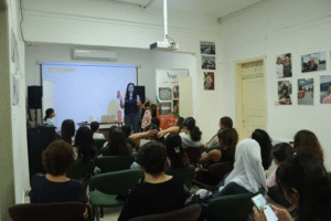 اليوم الثاني في المخيم البدايه كانت محاضره عن أنواع التطريز في كل بلده والفرق بين الاثواب من المدن الجنوبيه حتى الشمال وتم عرض الاثواب الفلسطينيه…